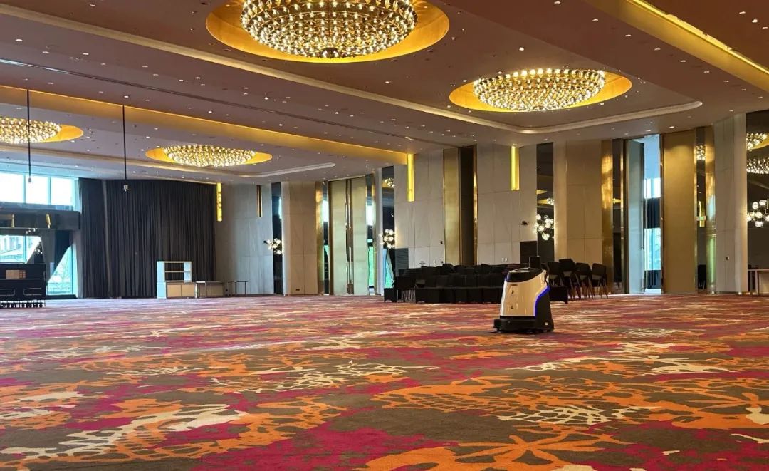 宴會廳面積達2050㎡,地面類型為地毯和大理石。兩臺Vacuum 40負責宴會廳內部、外圍走廊、活動區的地面吸塵。