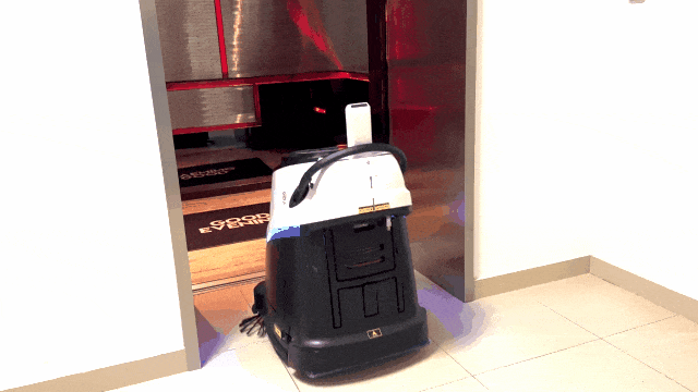 上海外灘W酒店的Vacuum 40安裝了梯控,機器人可自行上下電梯,便于多樓層間的調度作業,比如大型會議結束后,調度多臺機器人共同執行任務。